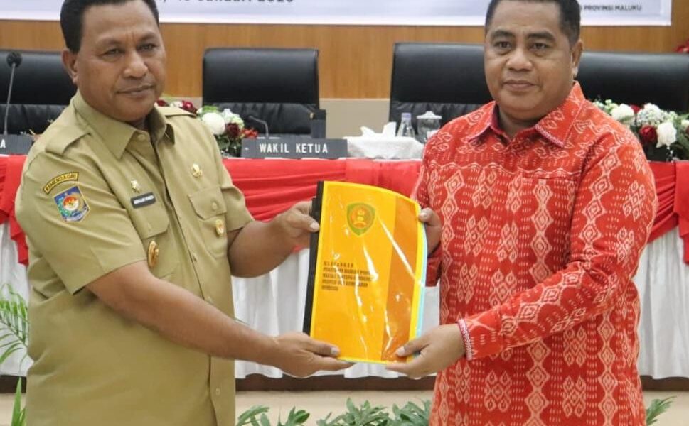 AMBON – Wakil Gubernur Maluku, Abdullah Vanath, menyerahkan dua Rancangan Peraturan Daerah (Ranperda) kepada Ketua DPRD Provinsi Maluku, Benhur George Watubun, dalam rapat paripurna penyampaian Ranperda...