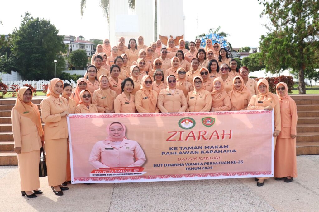 AMBON-Dalam rangka memperingati Hari Ulang Tahun ke-25, Dharma Wanita Persatuan (DWP) Provinsi Maluku melaksanakan kegiatan ziarah ke Taman Makam Pahlawan Kapahaha, Tantui, pada Kamis (5/12/2024).