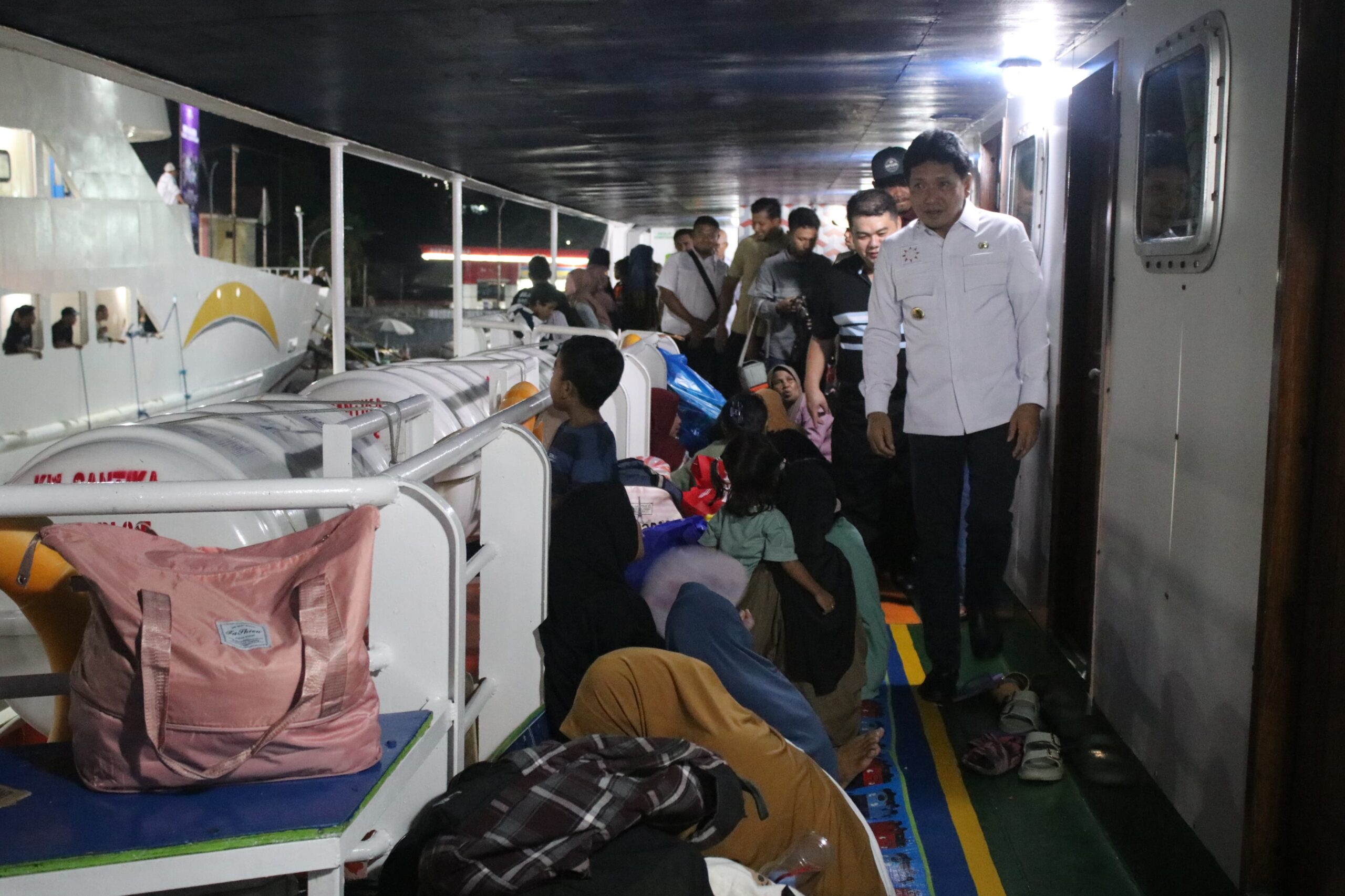 Sebanyak 1.150 penumpang diberangkatkan menggunakan dua kapal milik PT. Dharma Indah.