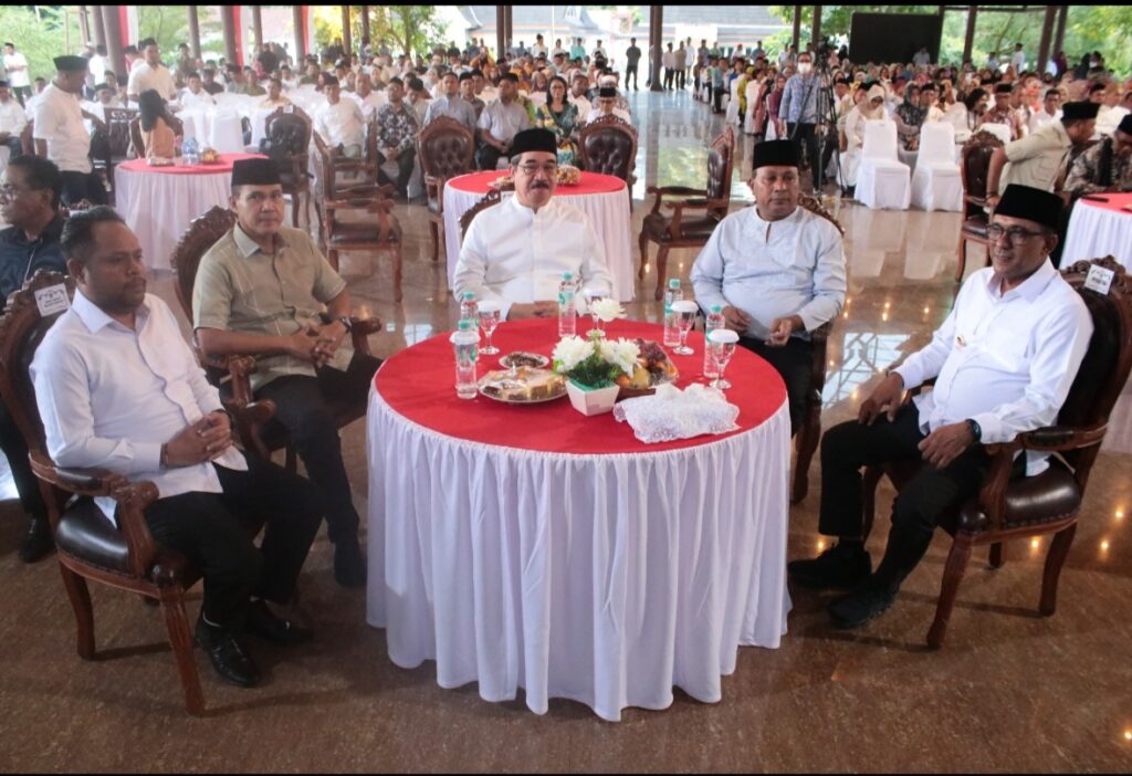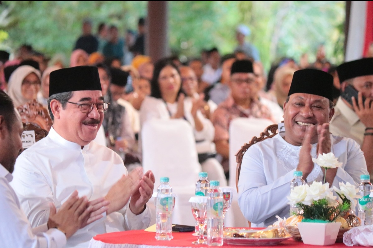 MAASOHI- Gubernur Maluku, Hendrik Lewerissa dan Wakil Gubernur Maluku Abdullah Vanath menghadiri acara buka puasa bersama Pemerintah Kabupaten Maluku Tengah, di Baileo Ir. Soekarno, Sabtu (15/3/2025). Turut bersama dalam rombongan, isteri Gubernur Maluku, Maya Lewerissa, isteri Wkil Gubernur Maluku, Hj. Rohani Vanath, Kepala Badan Intelejen Daerah Maluku dan sejumlah pimpinan OPD terkait.