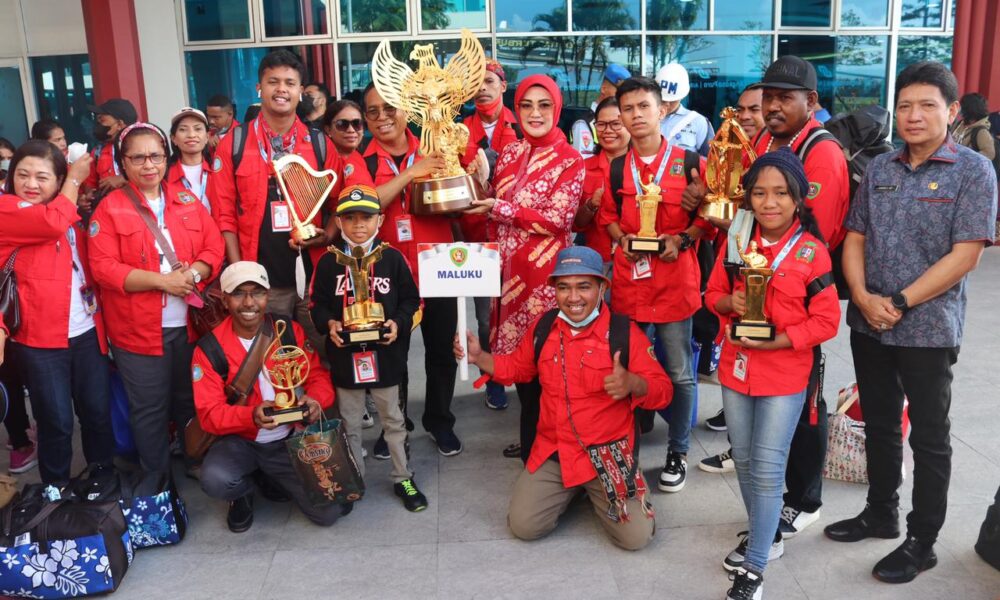 AMBON- Penjabat Sekretaris Daerah Provinsi Maluku Sadali Ie bersama Ketua Kontingen Pesta Paduan Suara Gerejani (Pesparani) Katolik Provinsi Maluku, Widya Pratiwi Murad, menyambut kedatangan kontingen Pesparani...