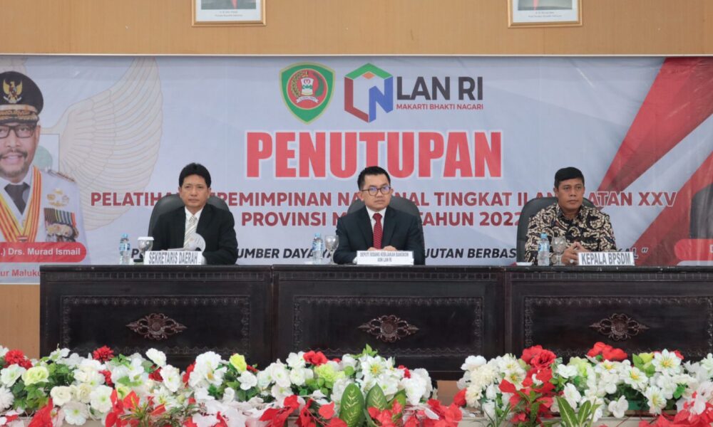 AMBON – Deputi Bidang Kebijakan Pengembangan Kompetensi ASN LAN RI, Dr. Muhammad Taufiq, DEA, didampingi Penjabat Sekda Maluku Sadali Ie dan Kepala BPSDM Provinsi Maluku, Hadi...