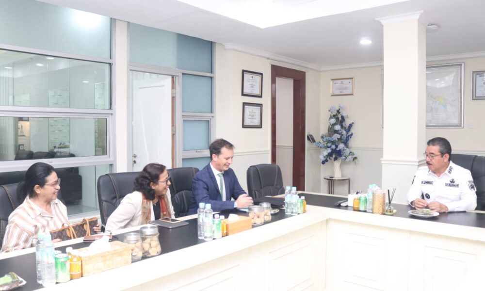 Gubernur Maluku, Hendrik Lewerissa, didampingi Asisten II Sekda Maluku Kasrul Selang serta Kepala Dinas Lingkungan Hidup Provinsi Maluku R. Syauta, menyambut kedatangan General Manager The Seachleaners...