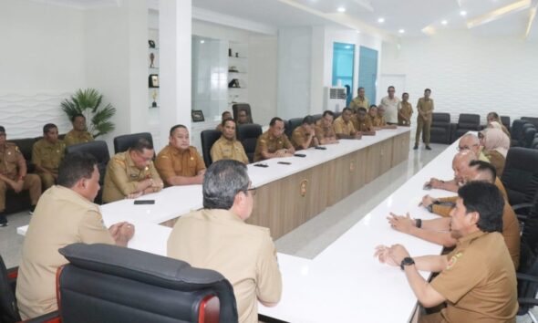 Ketgam: Sekda Maluku, Kasrul selang saat menghadiri Rakor dan Evaluasi Pemberantasan Korupsi Terintegrasi via Teleconfrence, yang digelar KPK RI, Rabu (06/5/2020).