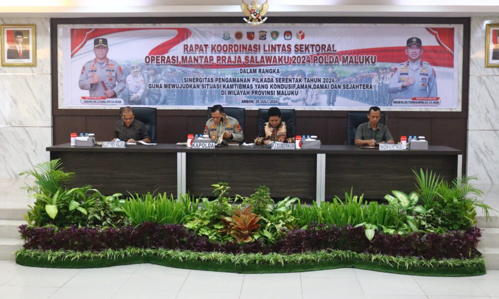 AMBON- Penjabat Gubernur Maluku, Sadali Ie, menghadiri Rapat Koordinasi Lintas Sektoral Operasi Mantap Praja Salawaku 2024 untuk pengamanan Pilkada 2024. Kegiatan ini berlangsung di lantai V...