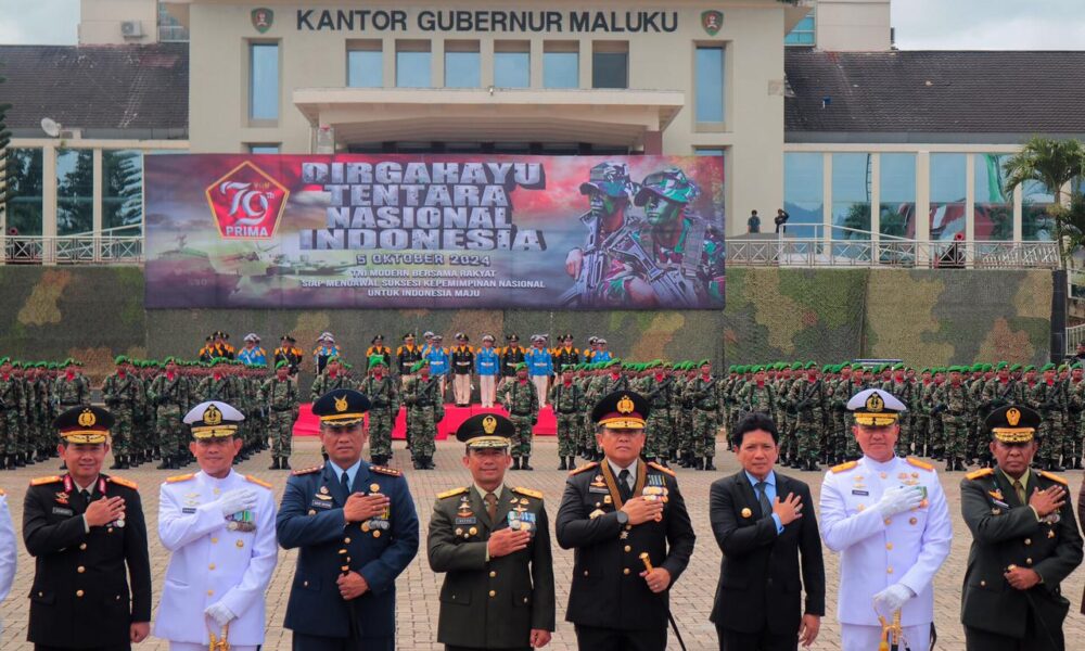 AMBON- Penjabat Gubernur Maluku, Sadali Ie, bersama sejumlah pejabat tinggi daerah dan Forkopimda mengikuti Upacara Peringatan Hari Ulang Tahun ke-79 Tentara Nasional Indonesia (TNI) yang berlangsung...