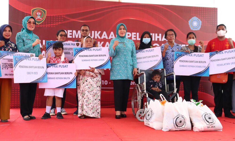 AMBON- Ketua Umum Tim Penggerak PKK Pusat, Ny. Tri Tito Karnavian menyalurkan sejumlah bantuan ketika melakukan kunjungan kerjanya di Kota Ambon, Provinsi Maluku, Kamis (10/10/2022) yang...