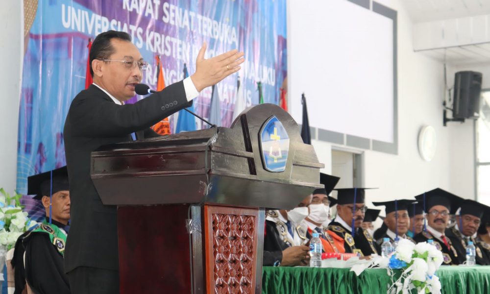 AMBON- Wakil Gubernur Maluku, Barnabas Nathaniel Orno menghadiri Rapat Senat Terbuka Luar Biasa dalam rangka Dies Natalis ke-37 Univetsitas Kristen Indonesia Maluku (UKIM), Kamis (1/9/2022) di...