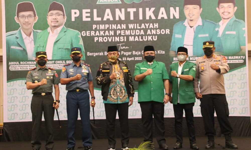 Ketgam: Menteri Agama RI, Yaqut Cholil Qoumas, Gubernur Maluku Murad Ismail menghadiri Pelantikan Pimpinan GP Ansor Provinsi Maluku