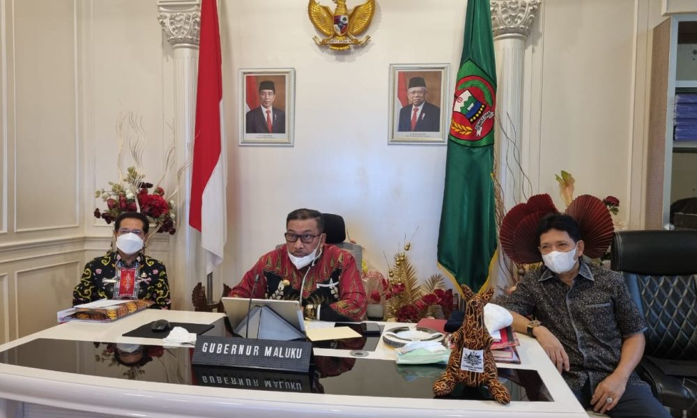 Ketgam: Gubernur Maluku, Murad Ismail didampingi Penjabat Sekda Maluku, Sadali Ie dan Kepala Bappeda Maluku, menghadiri Musrenbangnas Tahun 2022 secara virtual melalui konferensi video